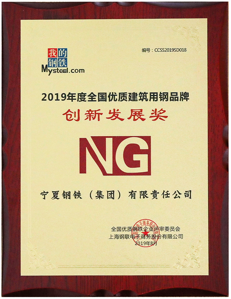 2019年度全國優(yōu)質建筑用鋼品牌·創(chuàng)新發(fā)展獎