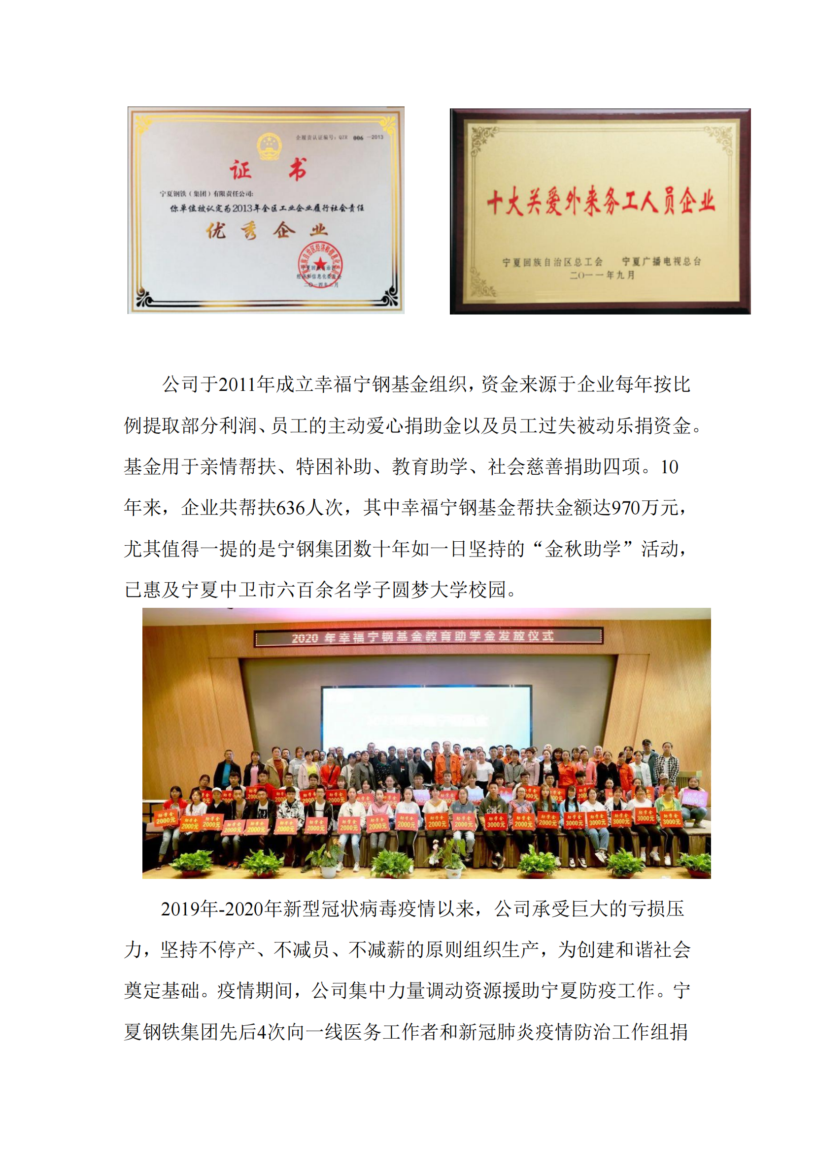 寧夏鋼鐵(集團)有限責(zé)任公司2020年度工業(yè)企業(yè)履行社會責(zé)任報告